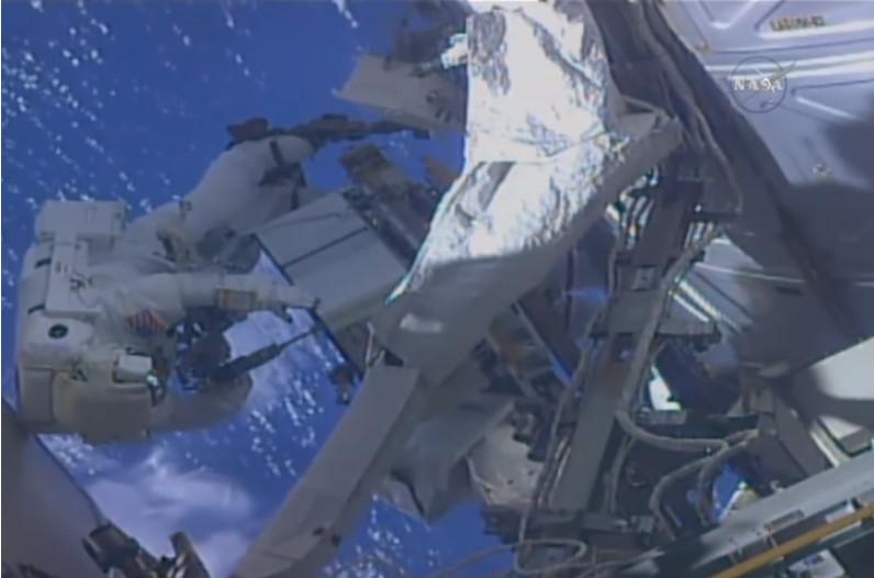 NASA опубликовало кадры из трансляции с Международной космической станции, на которых астронавт (предположительно, Эндрю Фьюстел) пытается включить камеру GoPro в открытом космосе. В трансляцию попал разговор астронавта и центра управления миссией.