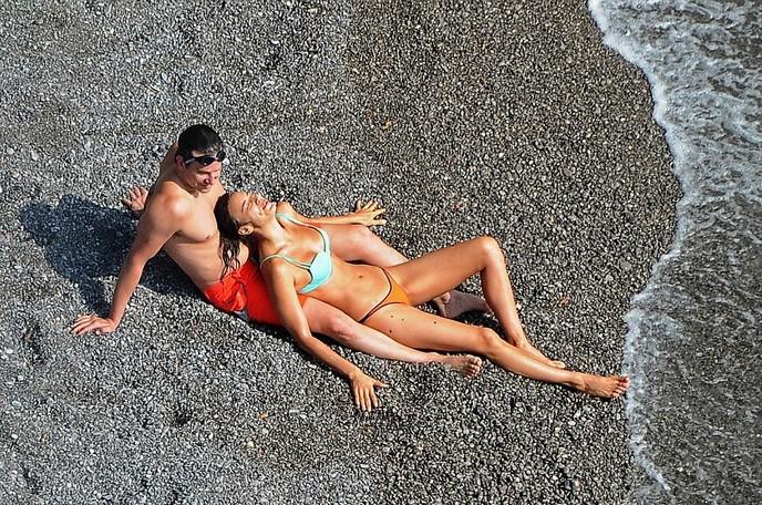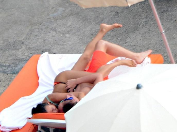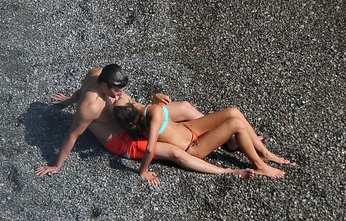 Во время пляжных бдений в Амальфи 29-летняя модель и 40-летний актер буквально не могли оторваться друг от друга, беспрестанно обмениваясь поцелуями.