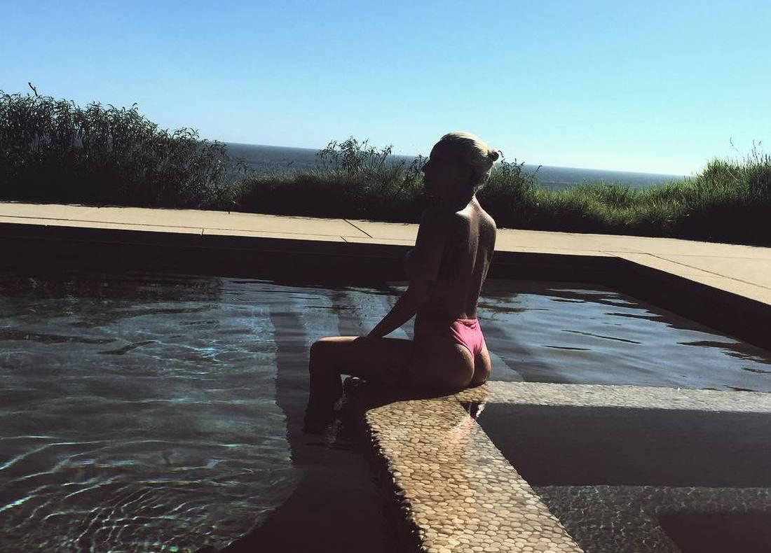 Об этом свидетельствует новое фото, которое исполнительница опубликовала в своем Instagram. На снимке певица сидит на бортике у бассейна, развернувшись к камере спиной. На ней надета лишь нижняя часть бикини. Гага выглядит очень стройной и подтянутой.