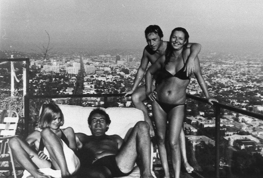 Джессика Лэнг, Милош Форман, Владимир Высоцкий и Марина Влади. США, Лос-Анджелес, август 1976 г.