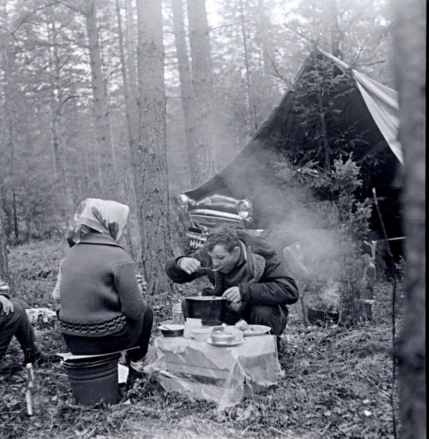 Юрий Гагарин на отдыхе в лесу.