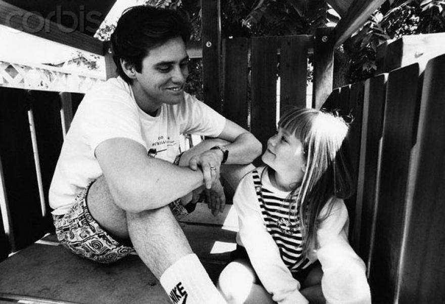 Джим Керри со своей дочерью Джейн Керри, 1991 г.