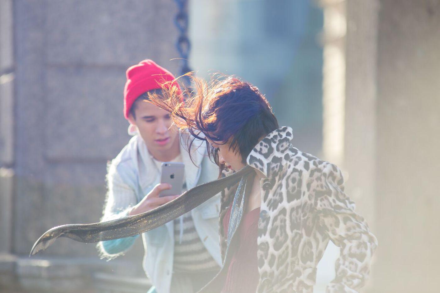 Далее по сюжету клипа, на том же мосту рядом с Юлей появляется симпатичный молодой человек, роль которого исполнил 17-летний блогер и внук миллиардера Игоря Неклюдова, Григорий Мамурин. К слову, юноша в Интернет-пространстве уже давно звезда — он прославился благодаря своему неоднозначному шоу на Youtube «Деньги решают все».