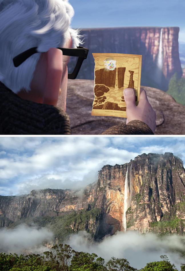1. Самый большой водопад в мире стал прототипом Райского водопада из мультфильма «Вверх». Расположен Анхель в Венесуэле, на территории Национального парка Канайма. Его высота — почти целый километр вверх!