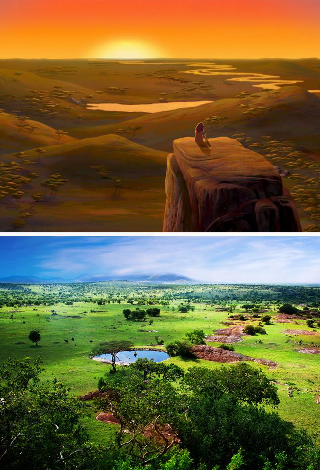 2. Мир Симбы в мультфильме «Король Лев»: Серенгети — огромный регион равнин и одно из лучших мест в мире, в котором посетители могут наблюдать за львами в их естественной среде обитания.