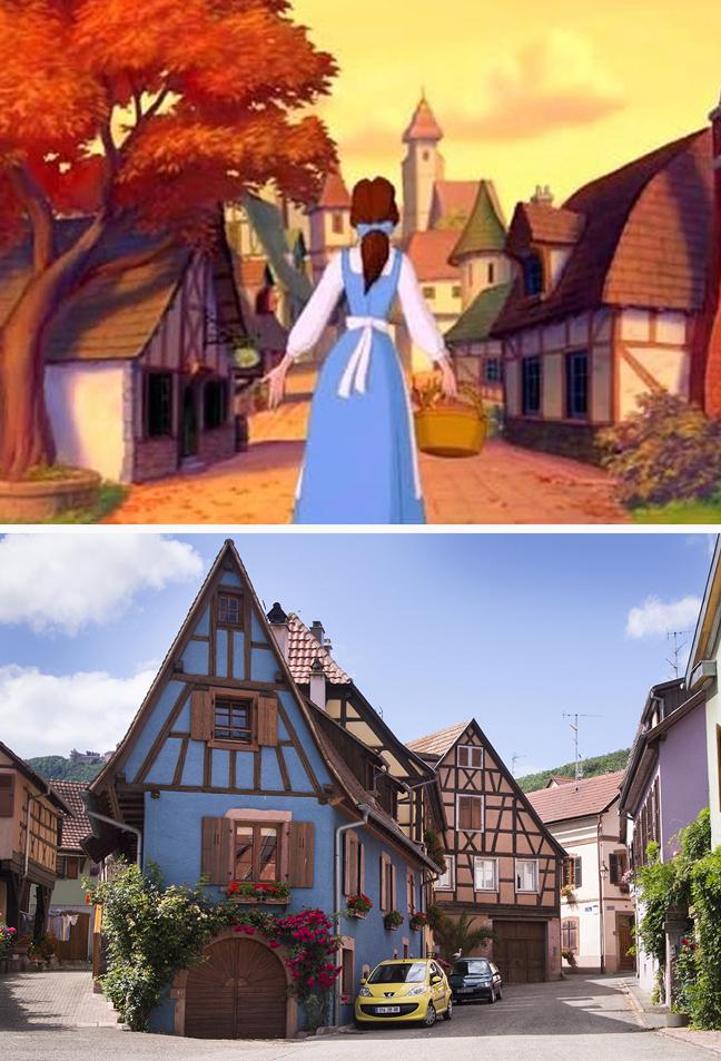 8. Родной город Белль нарисован аниматорами с особенным архитектурным стилем и шармом реального города Рикевира в Эльзасе, что находится в долине Луары во Франции.