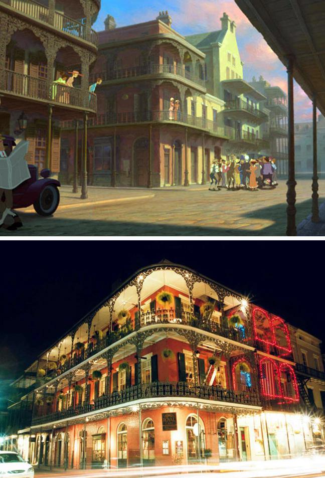 5. Действие мультфильма «Принцесса и лягушка» происходит в 1920-х годах, в Новом Орлеане. Решение снять эту историю в Новом Орлеане вызвало множество споров: критики заявили, что декорации мультика содержали намёки на шаманство и рабство. Как бы там ни было, живописная архитектура реального города и его улиц, в особенности французского района, нашла отражение в мультфильме.