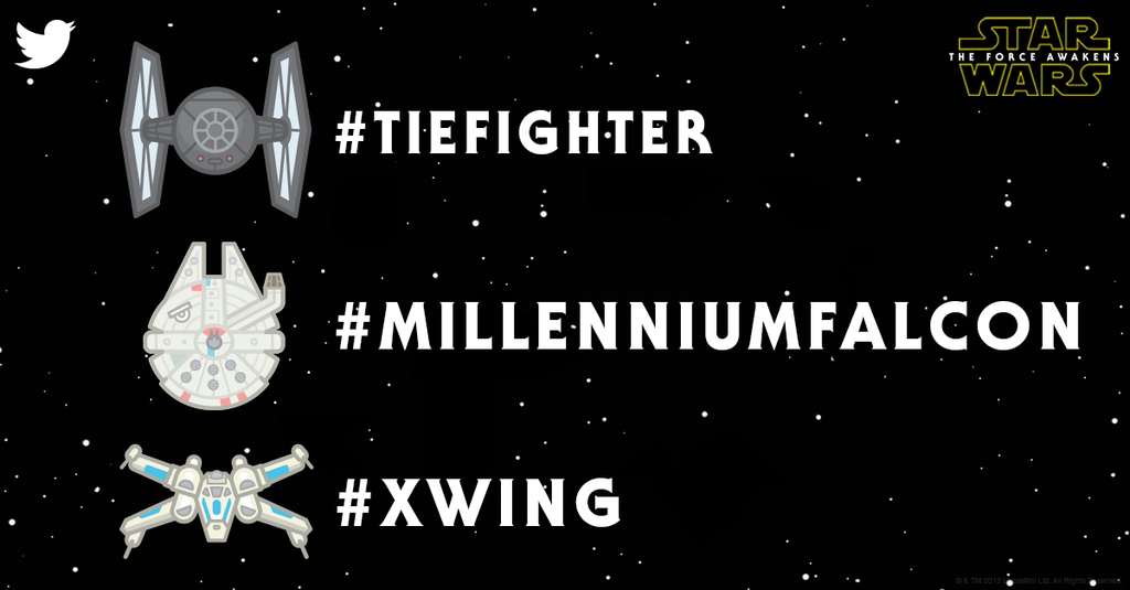 Для отображения их в постах микроблогов требуется использовать соответствующие хештеги: #TIEfighter #MillenniumFalcon #Xwing