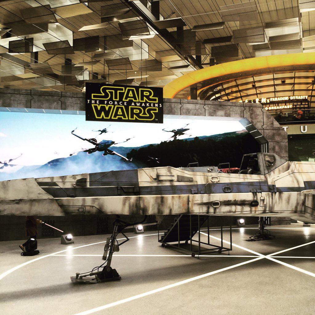 В рамках финального этапа рекламной кампании "Пробуждения Силы" в аэропорту Чанги в Сингапуре разместили полноразмерную модель боевого звездолета X-Wing. Истребитель нового образца воспроизведен в мельчайших деталях, включая кабину пилота: купив билет, каждый желающий может залезть внутрь и сделать фото в роли пилота-повстанца. Однако, по сообщениям местной прессы, количество билетов строго ограничено.