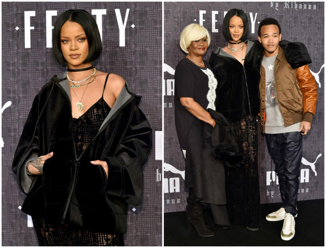 Согласно предоставленным американскими масс-медиа сведениям, поддержать популярную певицу в её новом начинании в качестве дизайнера одежды пришли мама Моника и младший брат Раджад. Также на дебютном показе FENTY PUMA by Rihanna присутствовали редактор женского модного журнала Vogue Анна Винтур, знаменитая супермодель Наоми Кэмпбелл и множество других звезд индустрии моды.