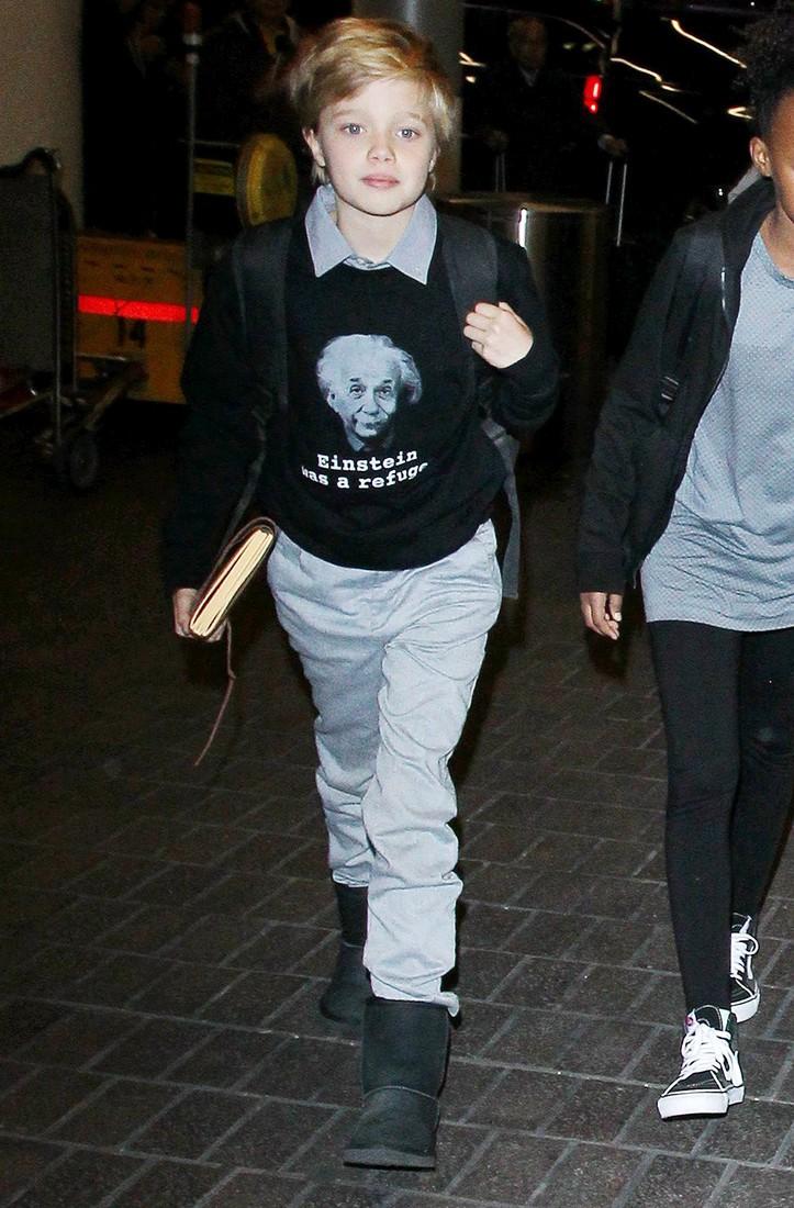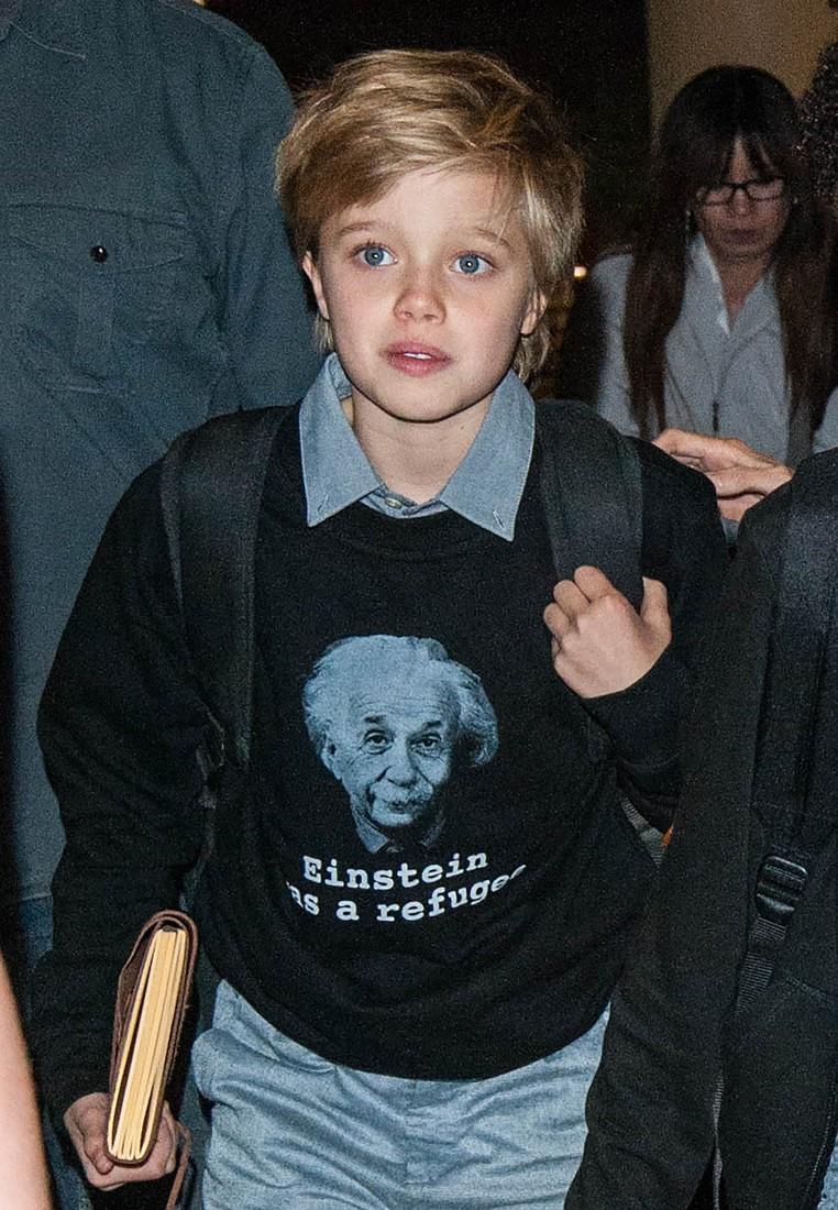 К слову, в аэропорту Шайло появилась в толстовке с примечательной надписью: «Эйнштейн был беженцем». Журналисты тут же соотнесли надпись с деятельностью Джоли как посла доброй воли ООН. Анджелина не единожды высказывалась о проблеме беженцев в Европе, а на этот раз, видимо, решила транслировать свои убеждения через слоган на одежде дочери (имеется в виду, что Альберт Эйнштейн переехал в США из Европы, когда фашистское движение начало набирать силу, и фактически оказался беженцем).