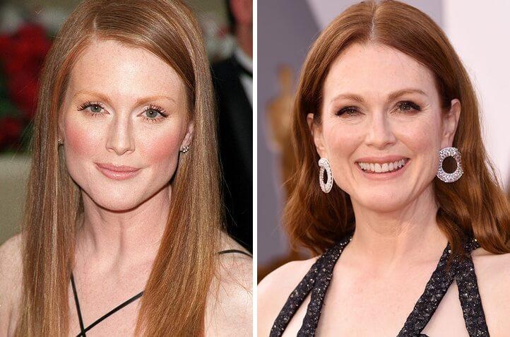 «Джулианна Мур всегда заявляла, что не обращалась к пластическим хирургам. И действительно, мы не видим никаких признаков пластических операций. Джулианна выглядит чуть моложе своего возраста. У нее нет нарушения архитектоники лица в результате провисания мягких тканей, глубоких складок. И только сеточка мелких морщин и сниженный тонус кожи выдают возраст».