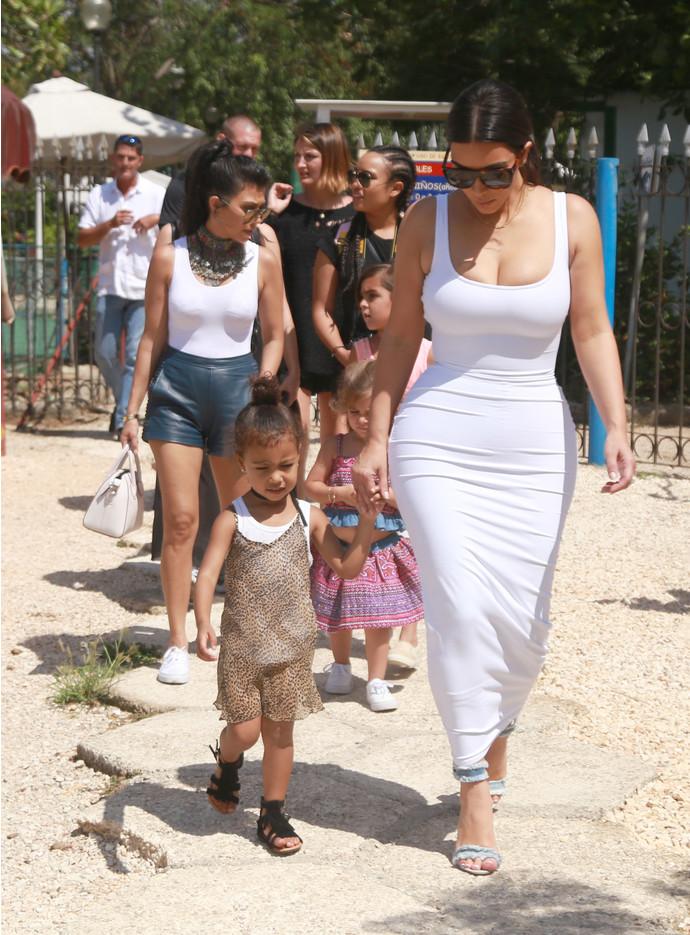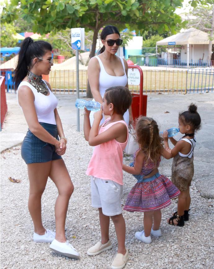 Впрочем, чета приветливо улыбалась и позировала собравшейся публике, снимающей гастролеров на камеры телефонов. Расслабиться и развлечься Ким и Кортни Кардашьян с детьми удалось лишь в парке развлечений: сестры вспомнили детство и вместе с детьми катались на аттракционах и каруселях.