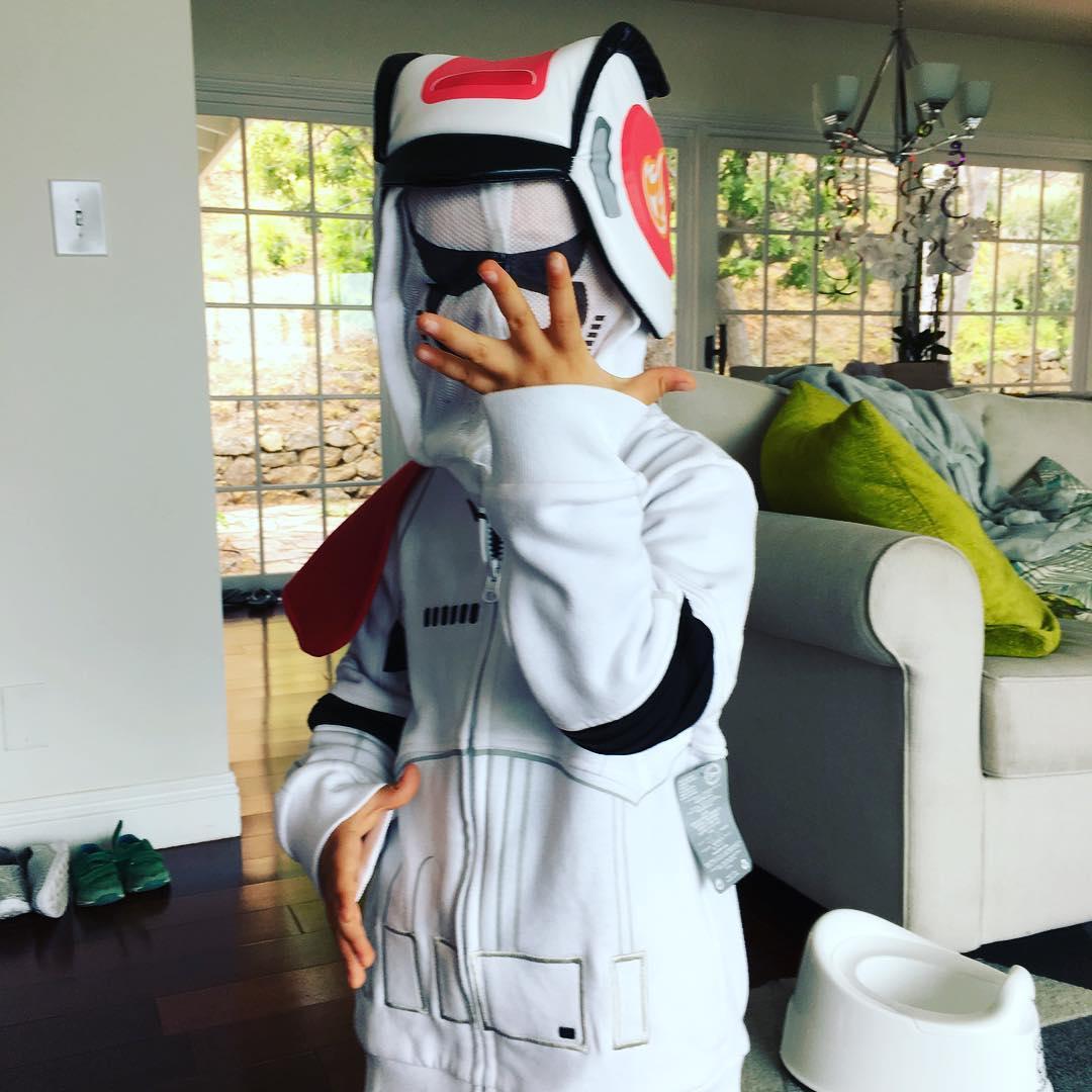 И глядя на малыша, позирующего в костюме штурмовика из «Звездных войн», не остается ни малейших сомнений в том, что малыш и правда питает нежные чувства к фантастической франшизе. Как несложно заметить, опубликовав фотографию сына, звездные родители все же остались верны себе — лица малыша все равно не видно.