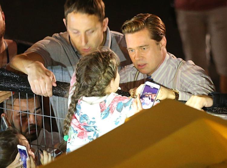Питт, который приветствовал собравшихся на улицах города Лас-Пальмас-де-Гран-Канария поклонников, заметил, что толпа прижала маленькую девочку к ограждению, и с помощью своих телохранителей вытащил ребенка из давки. Прежде чем вернуться к работе, артист убедился, что девочка находится рядом с матерью.
