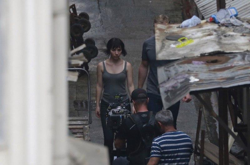 Скарлетт Йоханссон на съемках фильма «Призрак в доспехах»