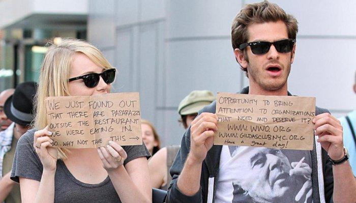 Можно просто делать вид, будто не замечаешь человека с фотокамерой. Можно наброситься с кулаками за стремление вторгнуться в личную жизнь, но это чревато последствиями. А можно как те, о ком сейчас пойдет речь.