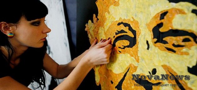 Художница из Донецка Анна-София Матвеева, создала портрет Стива Джобса размером метр на полтора, из жвачек.