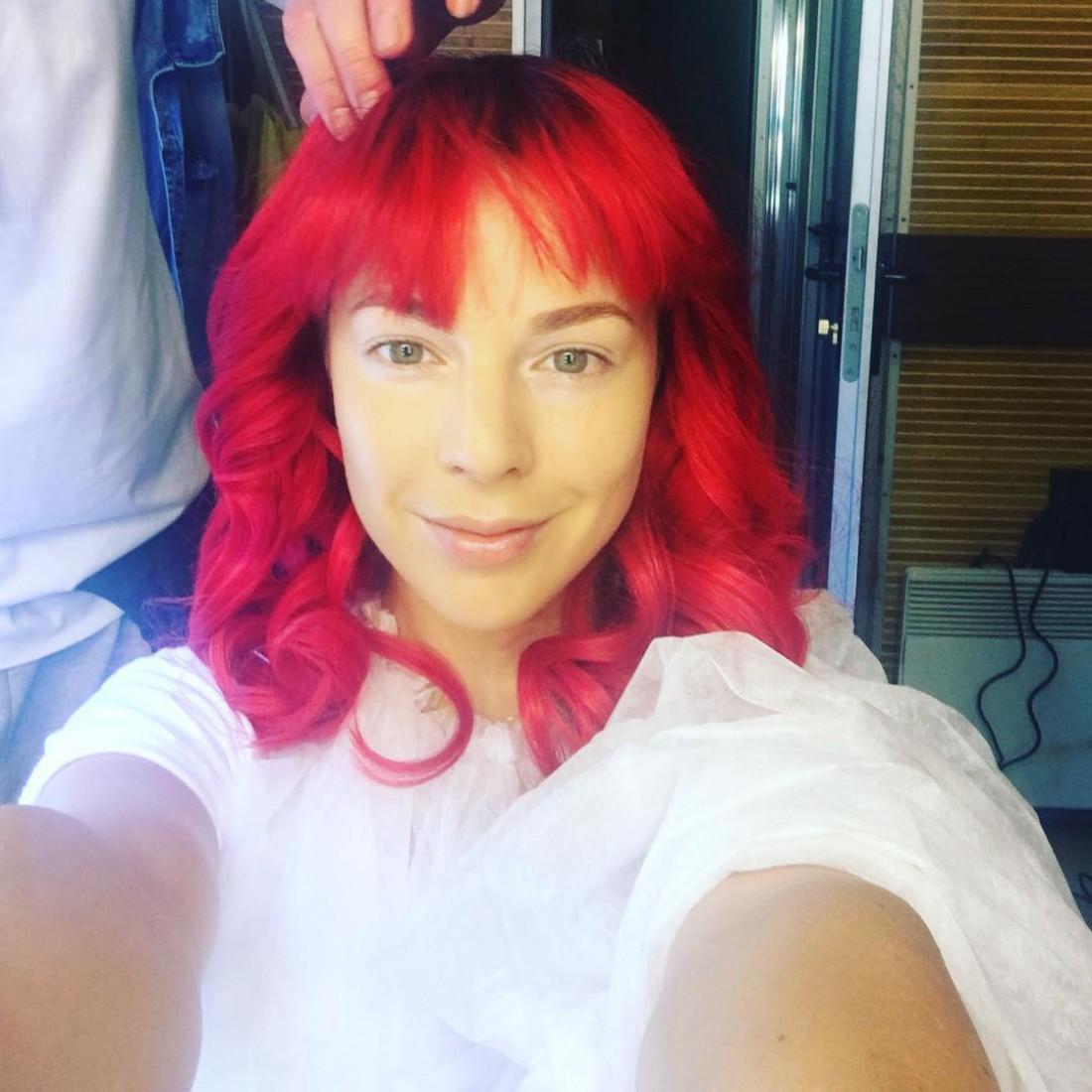 Артистка опубликовала фото, где она изображена с ярко-красными волосами. При этом она рассказала, что ей нравится ее работа тем, что в ней можно быть разной.