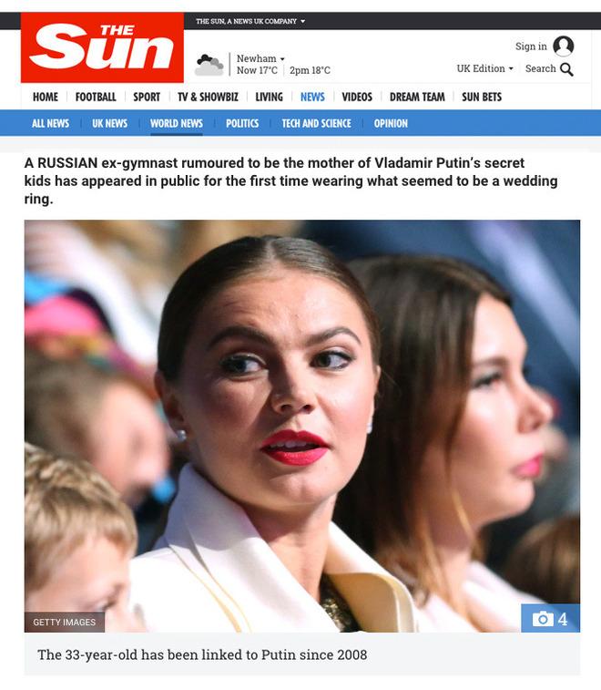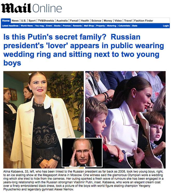 Такие уважаемые британские газеты как Daily Mail и The Sun вышли с провокационным заголовком: "Секретная семья Владимира Путина? Люовница российского президента появилась на публике с обручальным кольцом и двумя мальчиками".