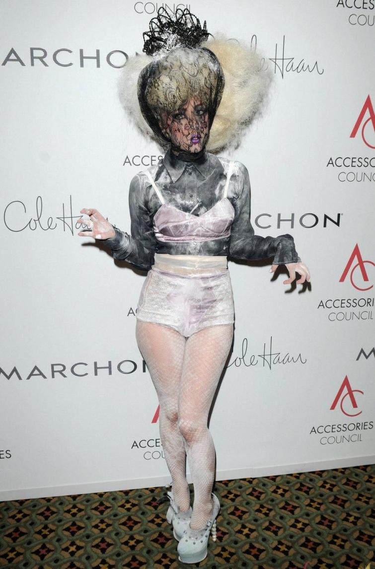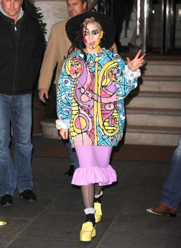 В начале своей звёздной карьеры певица выходила на публику, облачившись в костюм из сырого мяса, щеголяла на гигантских каблуках и светила нижним бельем в общественных местах.