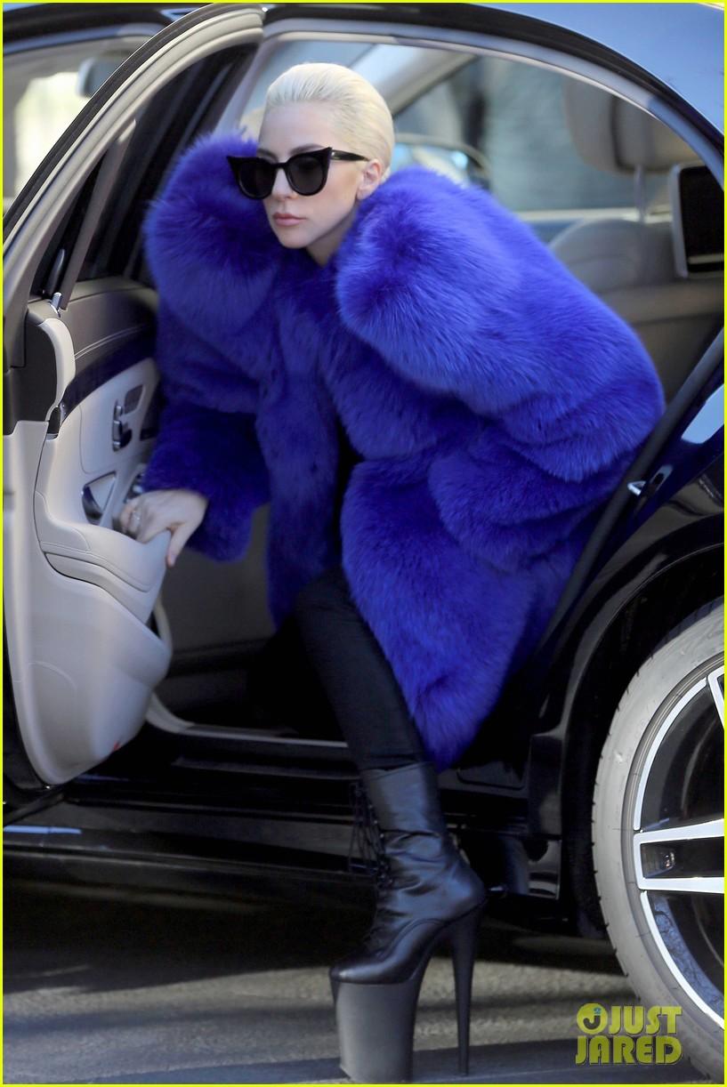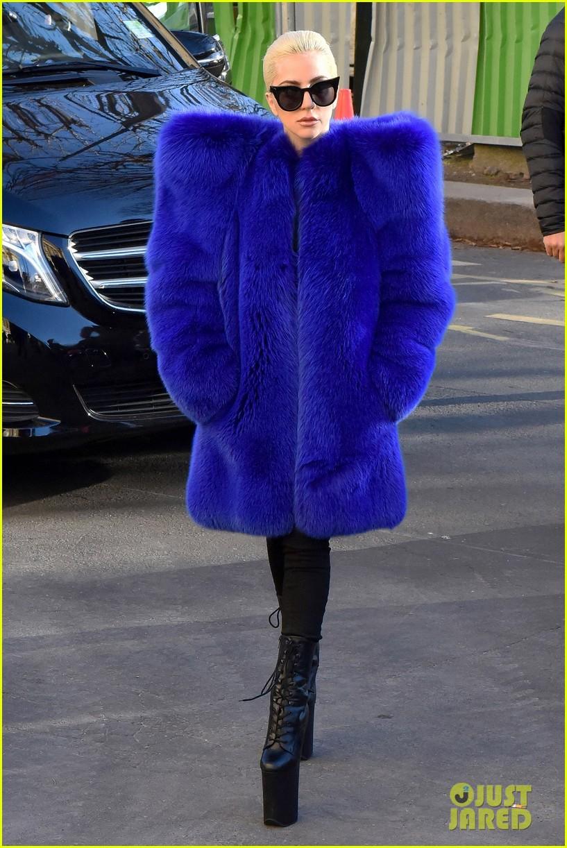 Леди Гаге уже 30, а она активно следит за модными тенденциями. В Париже на показе модного бренда женского белья она появилась в синей шубе нестандартного кроя с завышенными плечами, а также ботинках на безумно высокой платформе.