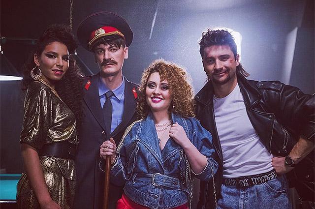 Сергей Лазарев выпустил клип в духе 80-х на песню "Лаки Стрэнджер"Энни, Александр Гудков, Мария Кравченко и Сергей Лазарев