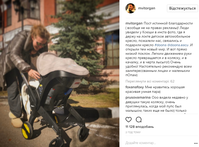 Как пример, на этот раз актер решил рассказать подписчикам о прелестях автокресла, которое можно установить на шасси коляски для удобства, либо использовать в доме в качестве люльки.