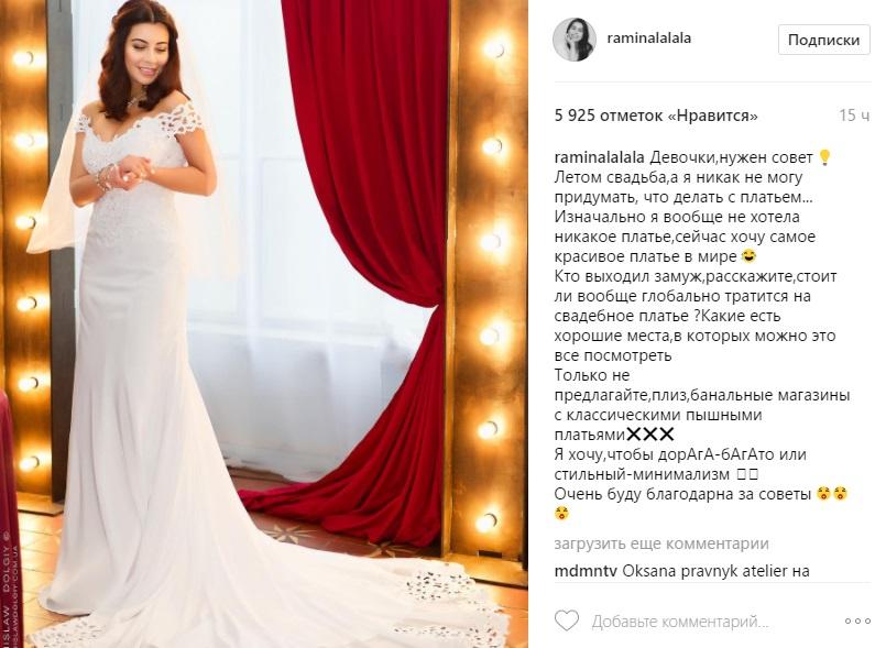 Рамина написала на личной странице в социальной сети Инстаграм о том, что изначально не хотела ни платья, ни торжества, но теперь ее взгляды кардинально изменились.