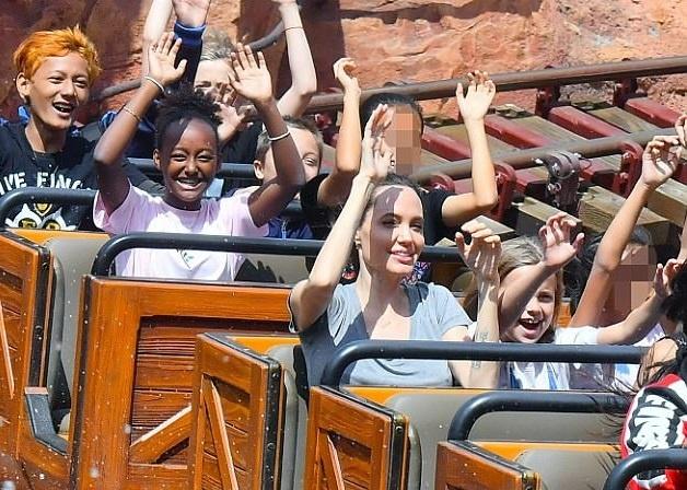 Джоли с детьми и помощницами папарацци заметили в Диснейленде в Анахайме.