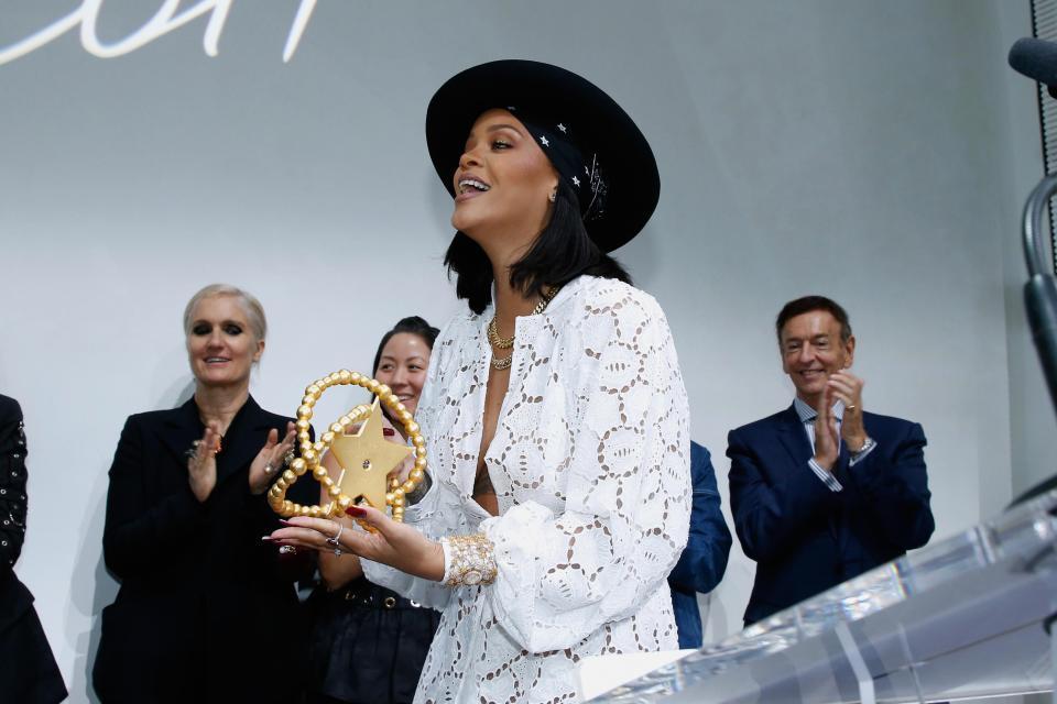 Для выхода “в свет” на церемонии награждения дизайнеров в Париже Рианна выбрала полупрозрачное кружевное платье, которое “захлестывается” посередине. Хотя фасон довольно строгий, выглядела исполнительница крайне сексуально. Особое внимание обратили западные издание на то, что певица не решилась испортить образ нижним бельем и абсолютно не прогадала.