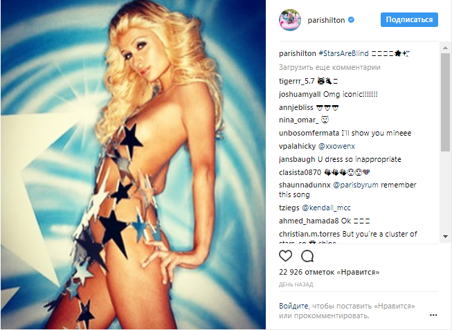 На снимке прелести Хилтон прикрыты звездочками, и качество фото очень плохое. Подписчики модели сразу же обратили внимание на ее бюст, и он оказался совсем непримечательным.