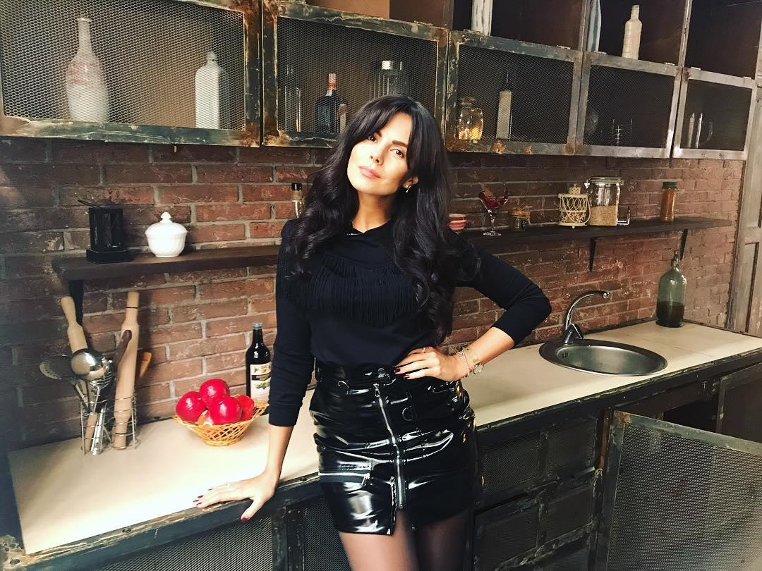 Для фотосессии Каменских выбрала темное одеяние - черный джемпер и кожаную мини-юбку. Такой наряд подчеркнул идеальную фигуру певицы, за что она заслуженно получила тысячи лайков и комплиментов.