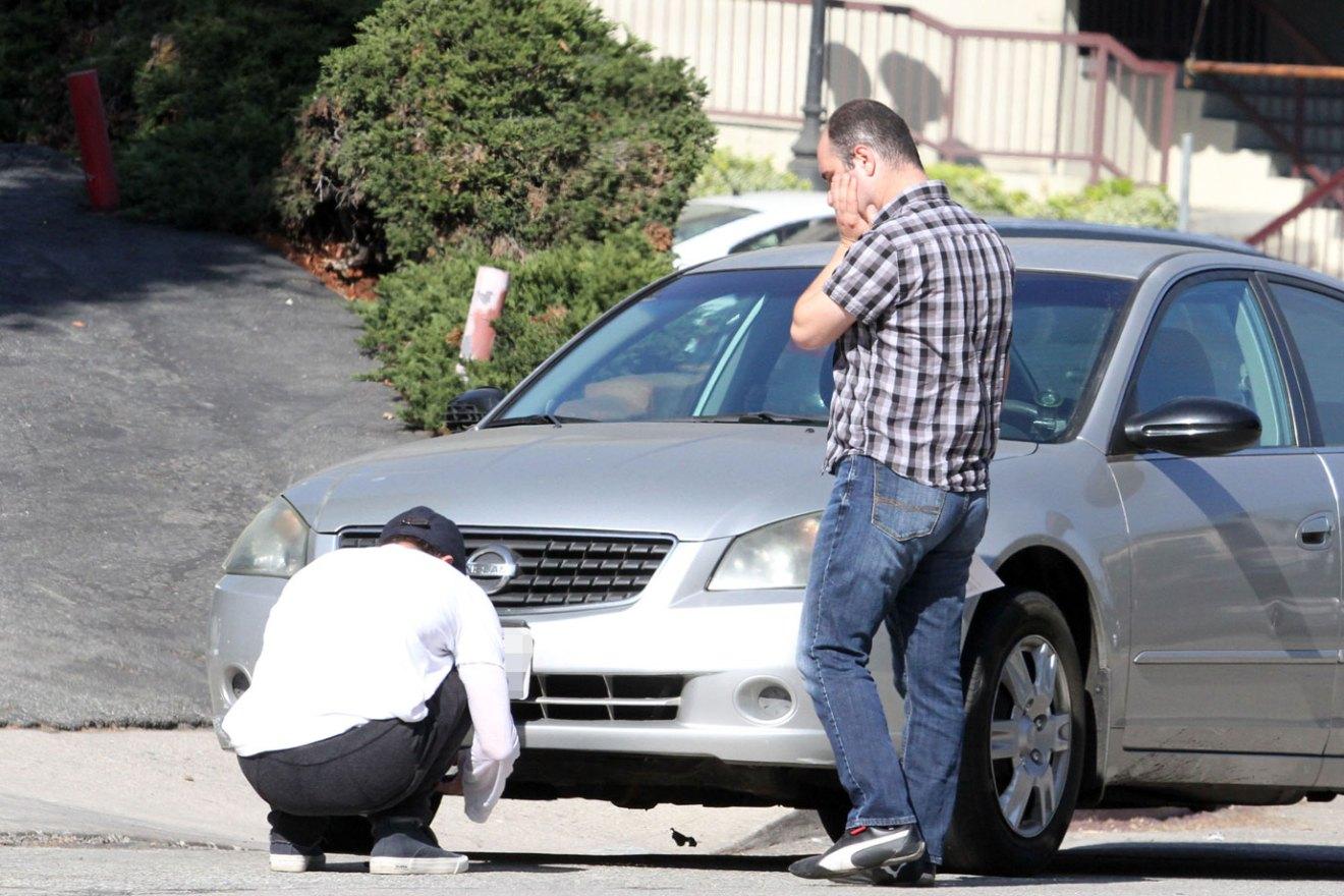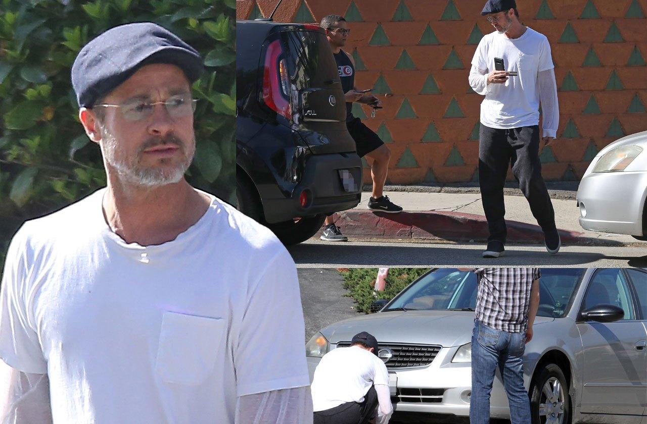 54-летний Питт был абсолютно спокоен. Он присел на корточки, чтобы сфотографировать ущерб, который нанес автомобилю. По всей видимости, актер не собирался уезжать далеко от дома, так как одет он был явно не для светского выхода. В тот день на нем были черные тренировочные штаны, кроссовки, белая футболка и берет.