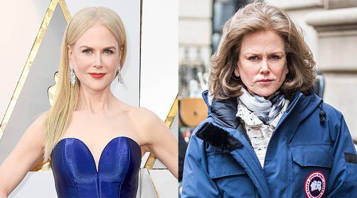 Недавно общественность рассматривала изящный выход Николь на красной дорожке кинопремии «Оскар», а сегодня наблюдает удивительное преображение актрисы. На днях Кидман была замечена на съемках фильма «Щегол» в Нью-Йорке. Благодаря парику и пластическому гриму, с первого взгляда в этой женщине сложно узнать Николь.