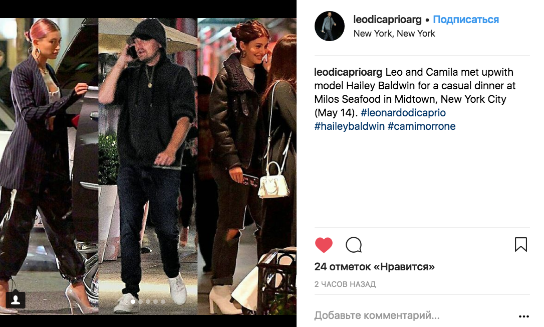 Папарацци сфотографировали влюбленных на улице. Лео разговаривал по телефону, а Камила вместе с Хейли шли за ним. Снимки разлетелись по соцсетям.