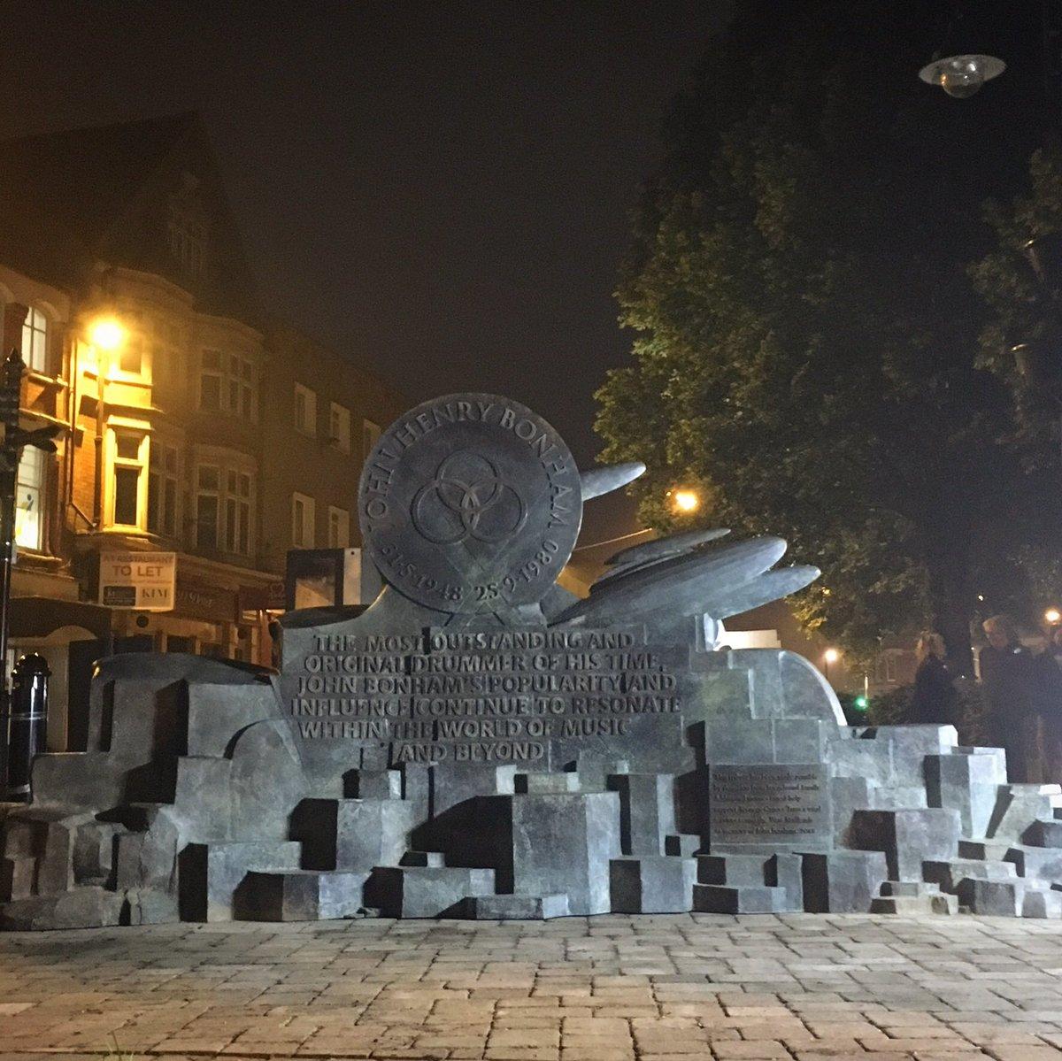 С одной стороны памятника изображен сам Бонэм за своей ударной установкой, а с другой находится надпись, которая гласит: “ Самому выдающемуся и оригинальному барабанщику своего времени, чья популярность и влияние по сей день распространяются в мире музыки и за ее пределами”.