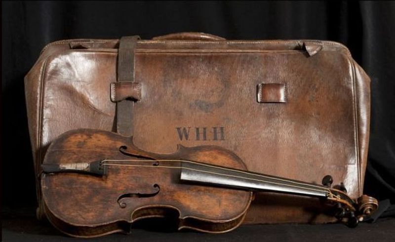 Скрипка, на которой во время крушения "Титаника" играл руководитель судового оркестра Уоллес Хартли, продавалась в комплекте с кожаным футляром с его инициалами. Музыкант получил ее в подарок от невесты в честь их помолвки, состоявшейся незадолго до его назначения на лайнер. На инструменте сохранилась дарственная надпись, нанесенная невестой скрипача.