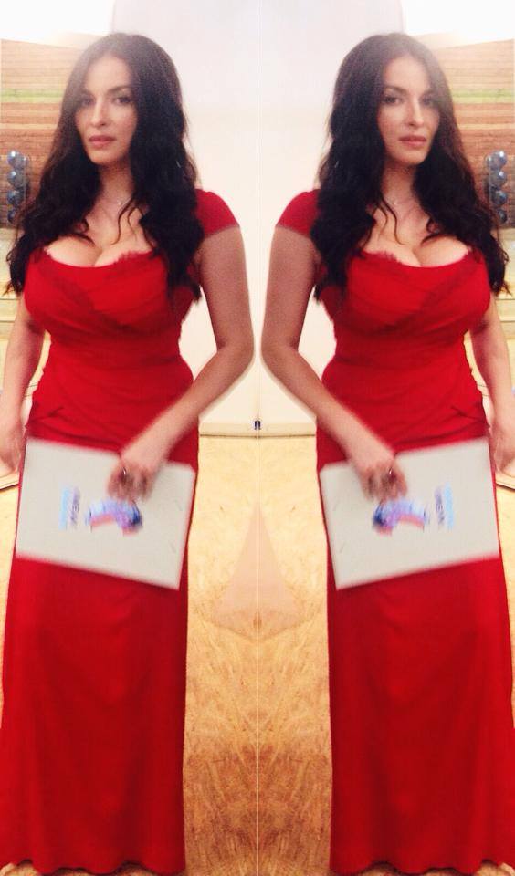Эффектная брюнетка выбрала роскошное красное платье в пол с откровенным декольте. Наряд Надежды прекрасно подчеркнул ее аппетитные формы.