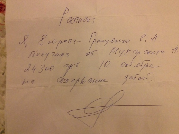 "Дальше - ложь о том, что я не плачу алиментов. Фото чеков почтовых переводов и расписок - лучшее опровержение этих лживых слов", - написал Мухарский в Facebook.