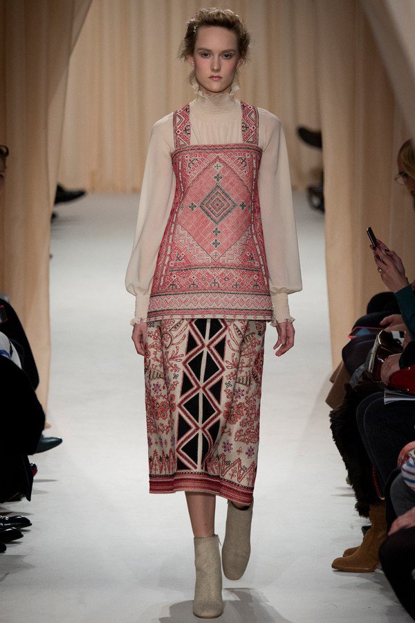 Неудивительно, что в коллекции дизайнеров Valentino присутствуют элементы традиционной славянской одежды. Платья и костюмы декорированы белорусской национальной вышивкой. Много нарядов дополнили жупаны разной длины.