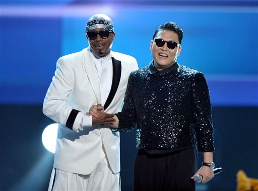 Знаменитый южнокорейский рэпер PSY, чье видео «Gangnam Style» имеет более 700 миллионов просмотров на YouTube, выступил на церемонии «American Music Awards» со своим бессмертным хитом вместе с воскресшим из небытия великим рэпером 80-х и 90-х MC Hammer.