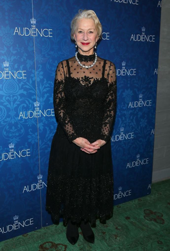 Как бы мы не любили Хелен Миррен, нельзя не признать, что на этот раз она промахнулась с выбором наряда – черное кружевное платье с низкой талией делает ее фигуру бесформенной, а нитка жемчуга на шее совершенно не сочетается с высокой горловиной, расшитой камнями.