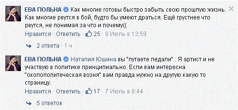Ева Польна принесла свои извинения за выступление в Киеве