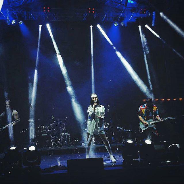 На концерте певица была в белом коротком платье, в котором засветила заметно округлившийся животик.