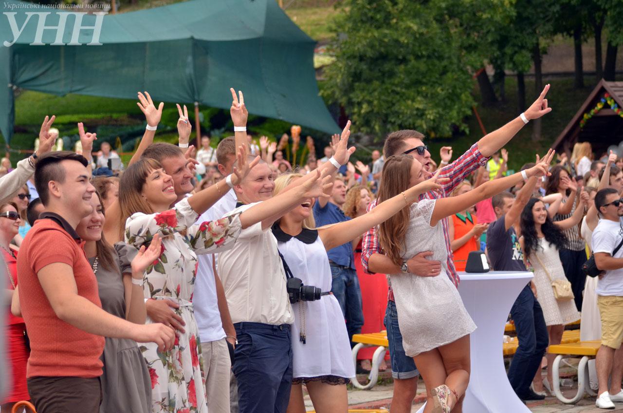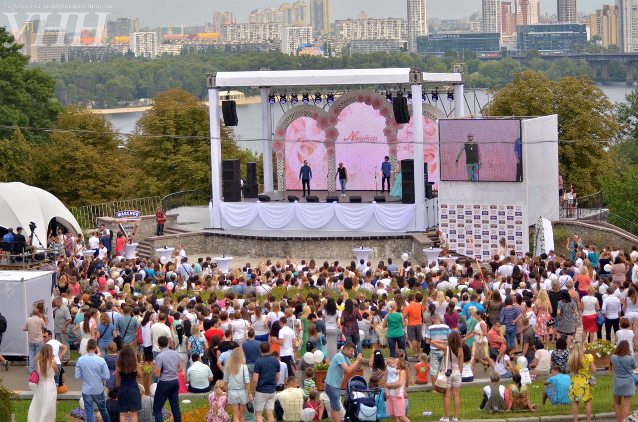 В перерывах между выступлениями певцов звучал марш Мендельсона и раздавались возгласы "Горько!". Кроме влюбленных, на праздник-концерт пришли около тысячи киевлян.