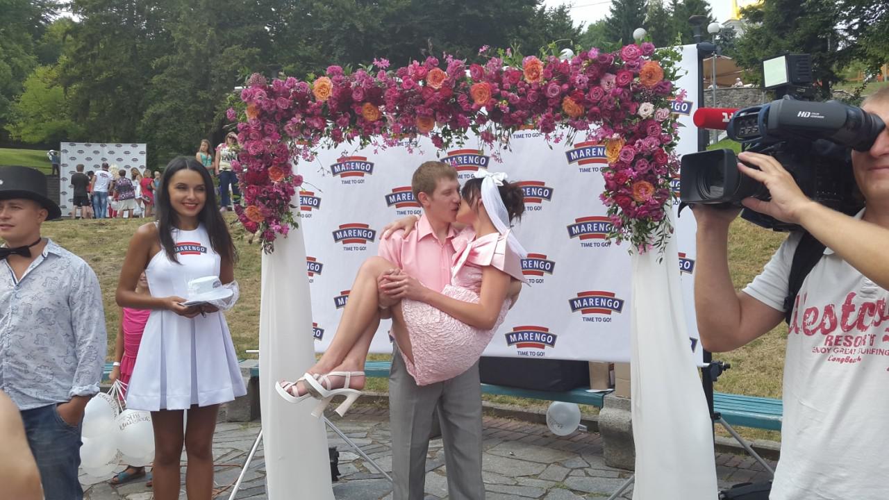 Жениться в этот день могли и те, кто уже давно женился, и те, кто только планирует, и, конечно, настоящие молодожены. Организаторы праздника также разыгрывали среди молодоженов различные подарки, среди которых и драгоценные украшения.