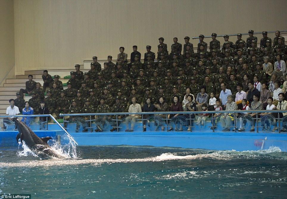 “Во время визита в дельфинарий в Пхеньяне вы можете фотографировать животных, но не военных, которые составляют 99% зрителей”.