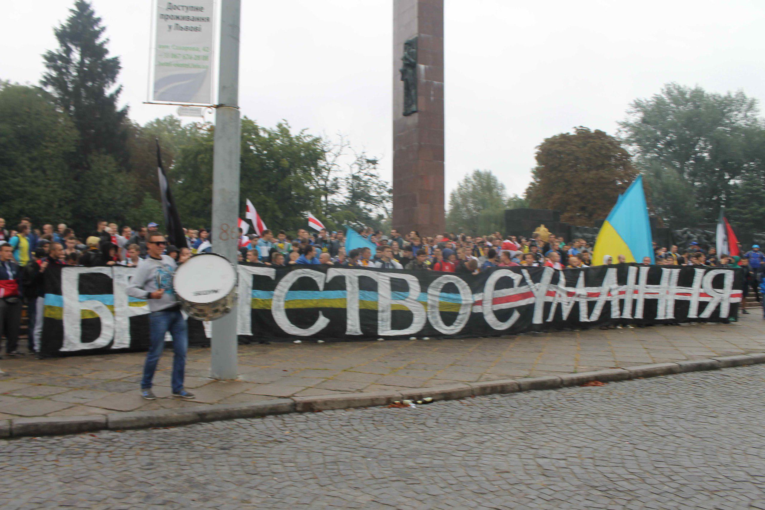 Акция началась за несколько часов до матча у Монумента Славы на перекрестке улиц Стрыйской и Героев Майдана, после чего болельщики направились к стадиону.