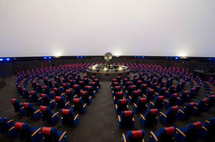 Внутри купола находится 350 кресел, расположенных по круговому принципу, опоясывая проекторы. Для показа здесь находятся два проектора: оптико-механический и цифровой. Они способны передавать изображения разрешением в 64 Мп.